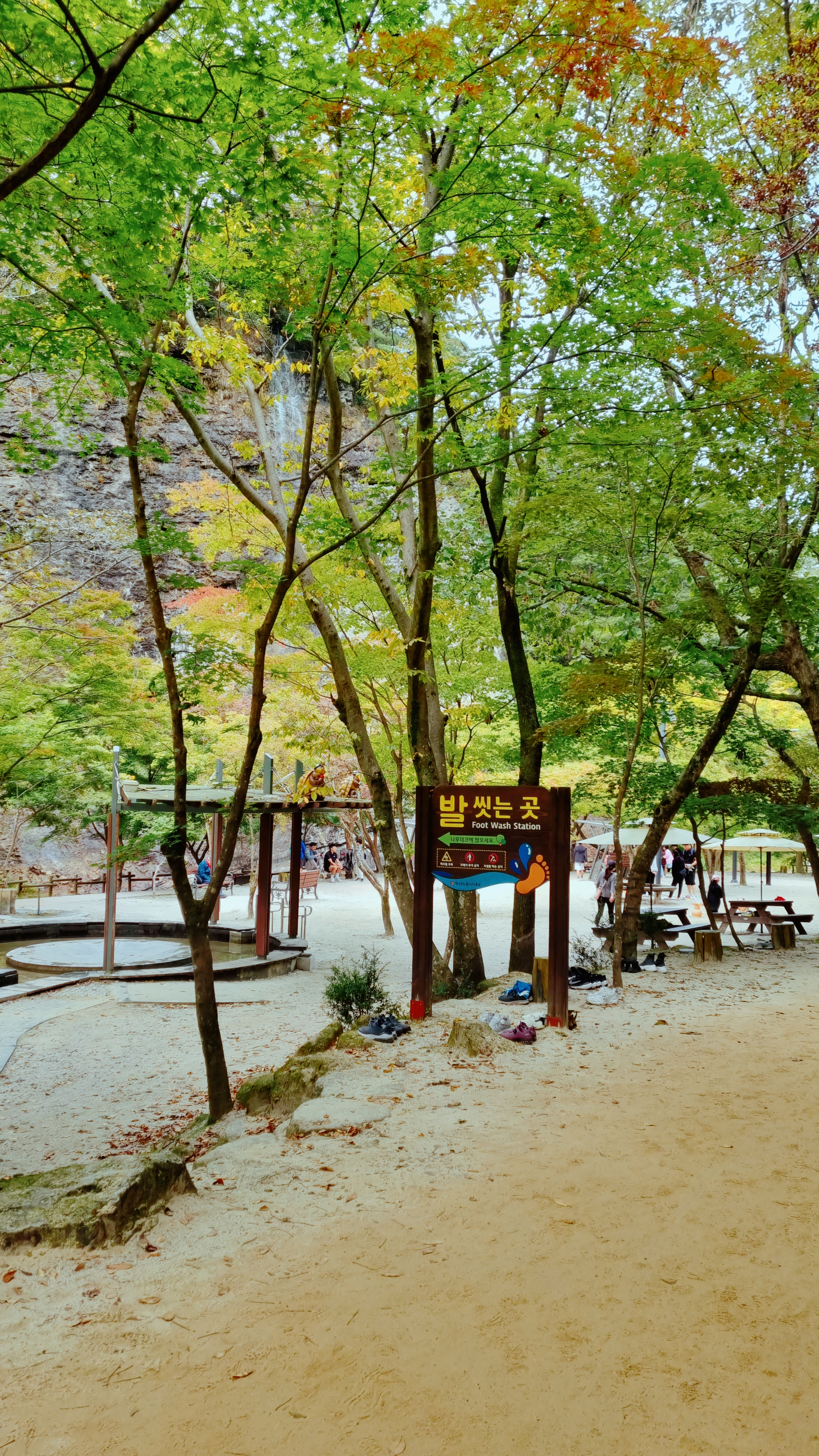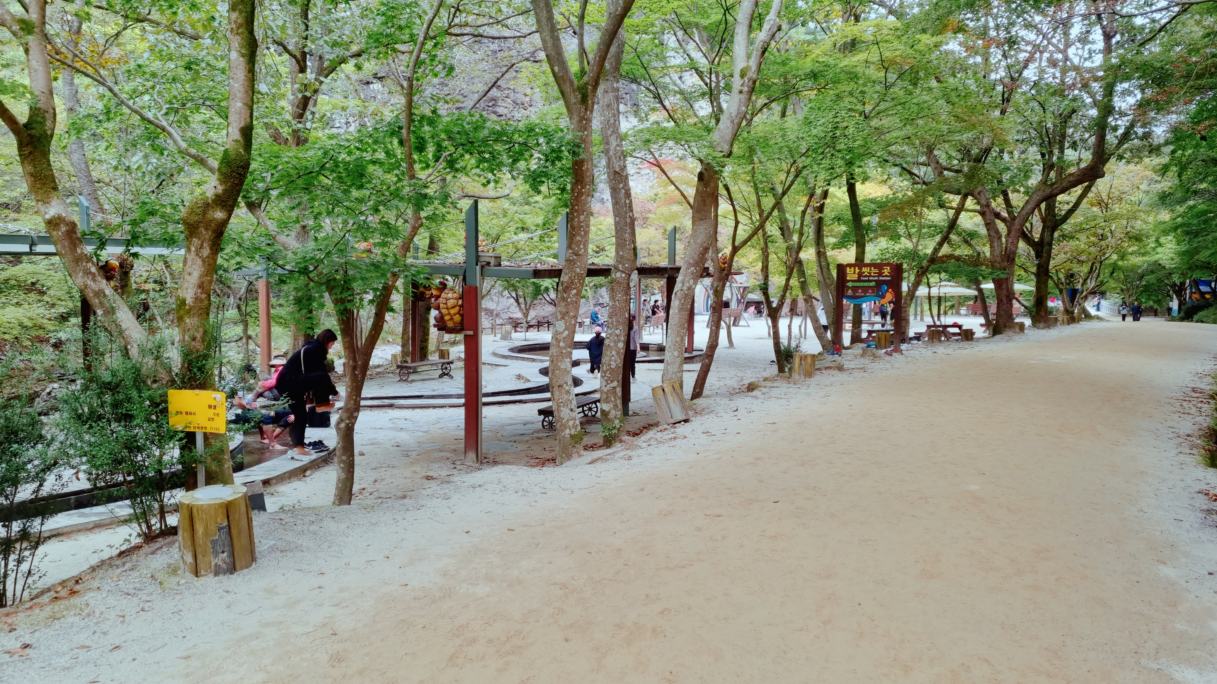맨발로 걷던 분들 여기서 발도 씻고,발 씻으로 쉰김에 한참 물에 발 담근채로 주변도 둘러보고