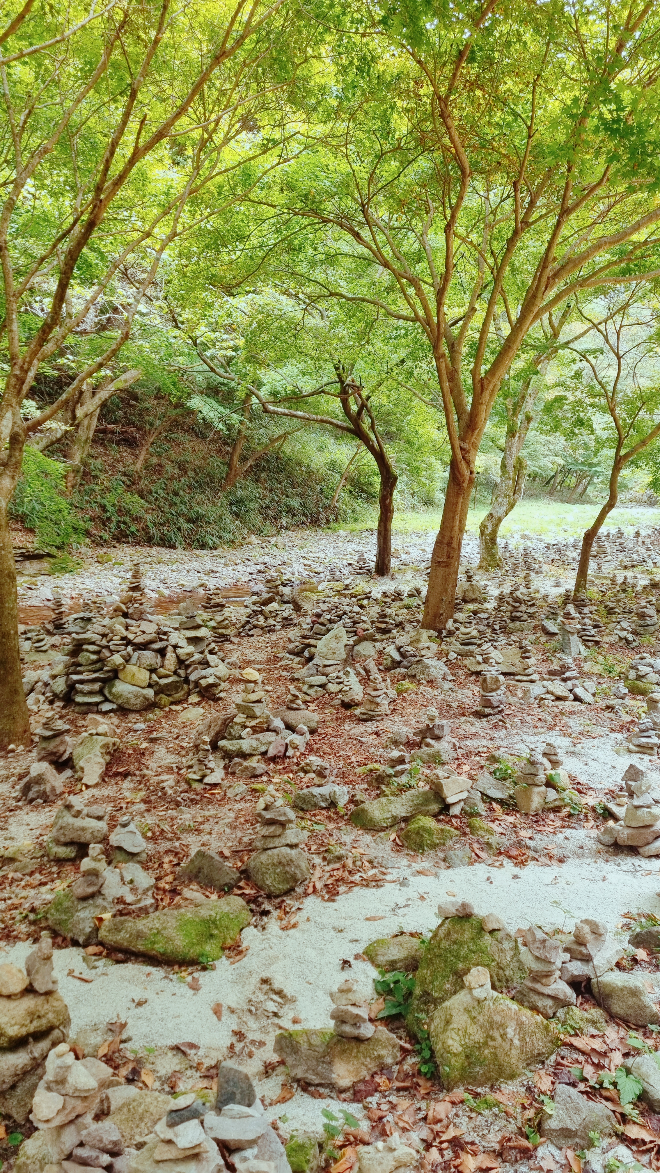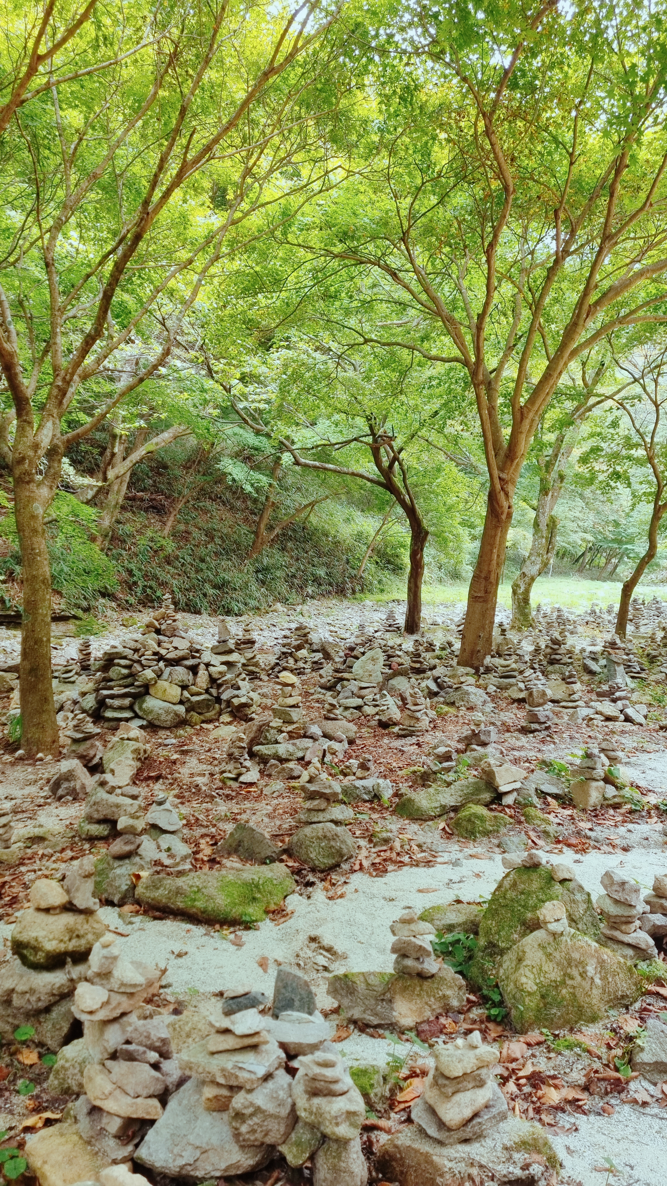 밤에는 트롤들로 변할거 같은 낮은 돌탑들이 많이 쌓여 있습니다.