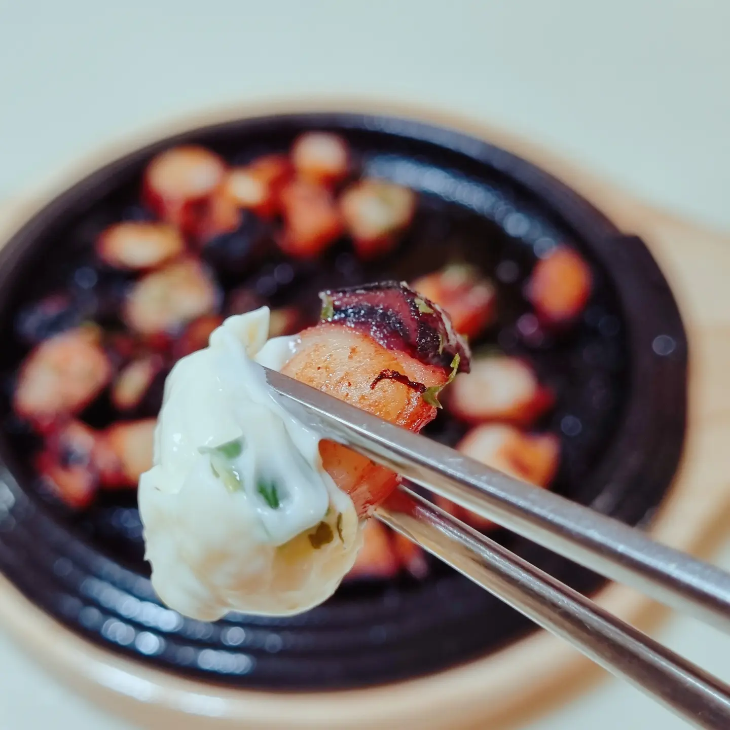 마요네즈에 청양고추 듬뿍 다져 넣고 문어를 듬뿍 콕!!