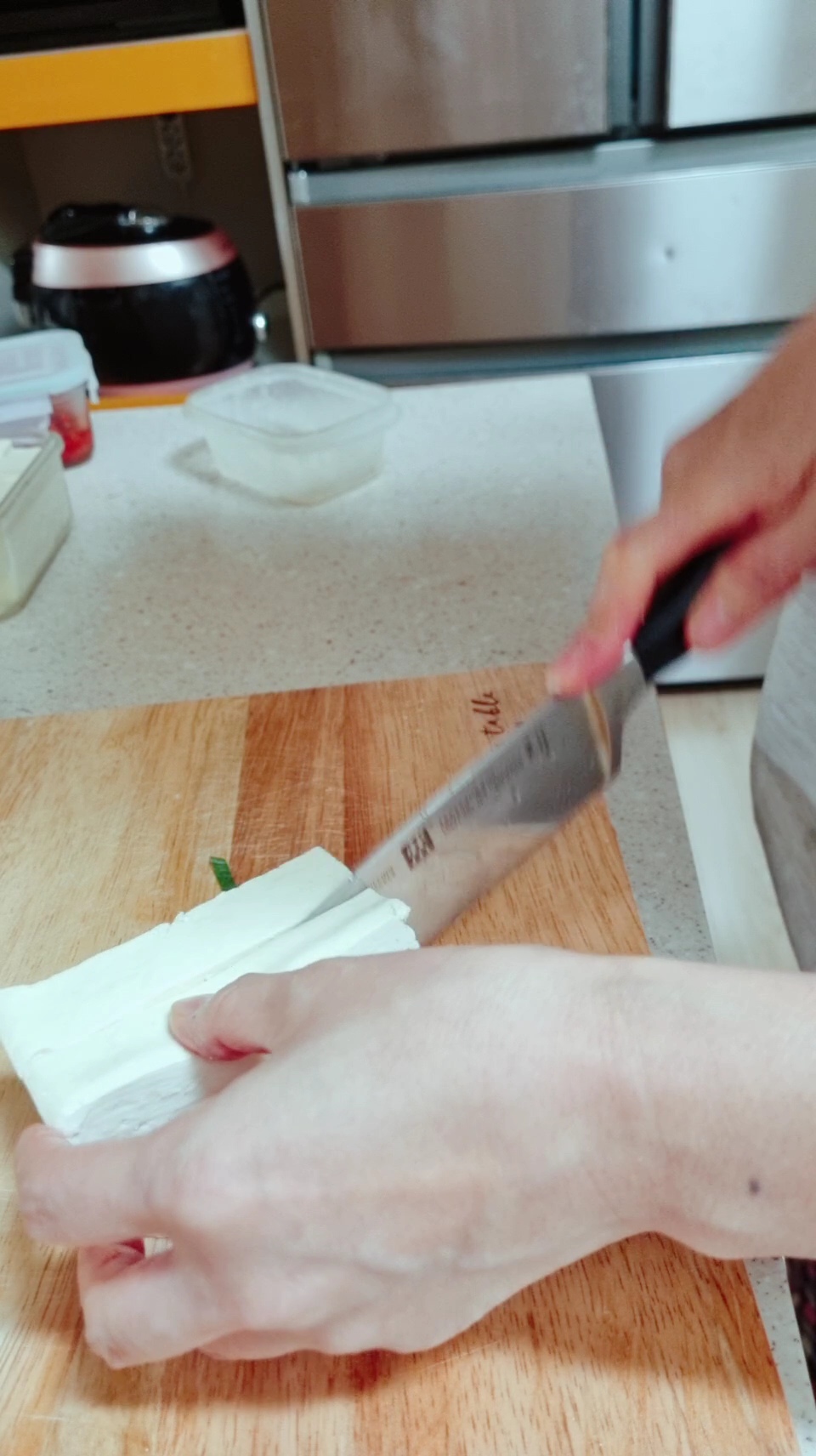 두부 3/1모, 양파반 개, 파 1, 사골육수 1팩, 시판부대찌개양념 1, 물 1컵