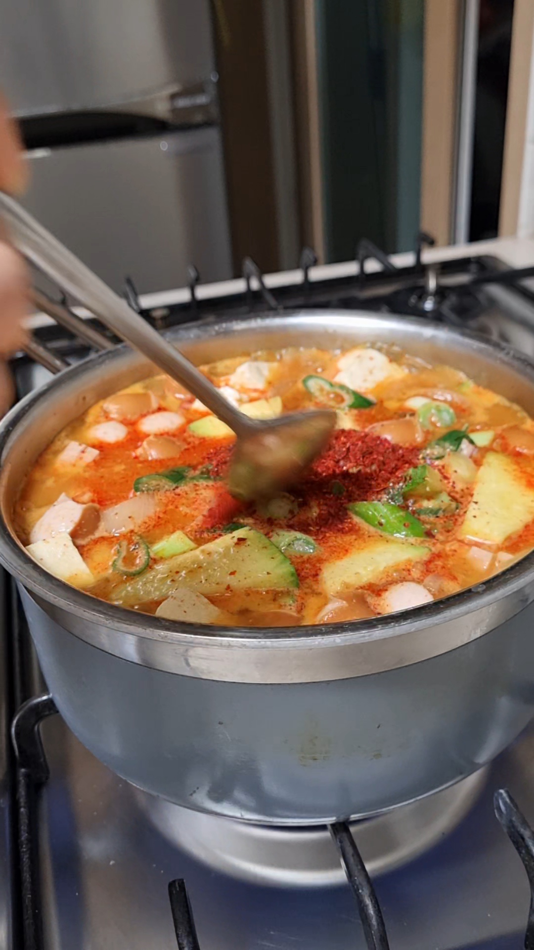 여기에 화룡점정!! 시판 부대찌개 양념을 다 넣어줍니다.